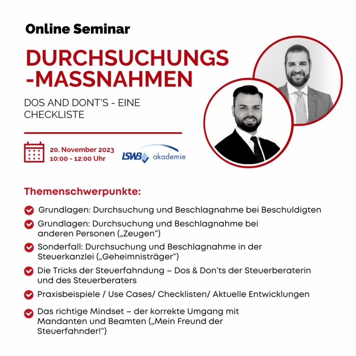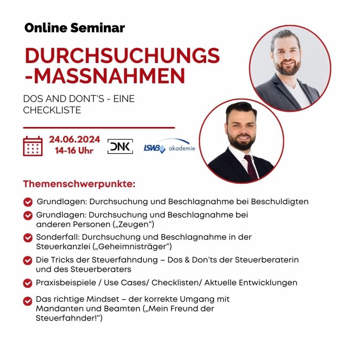 Online-Seminar - Durchsuchungsmaßnahmen - Do´s and Dont´s - eine Checkliste