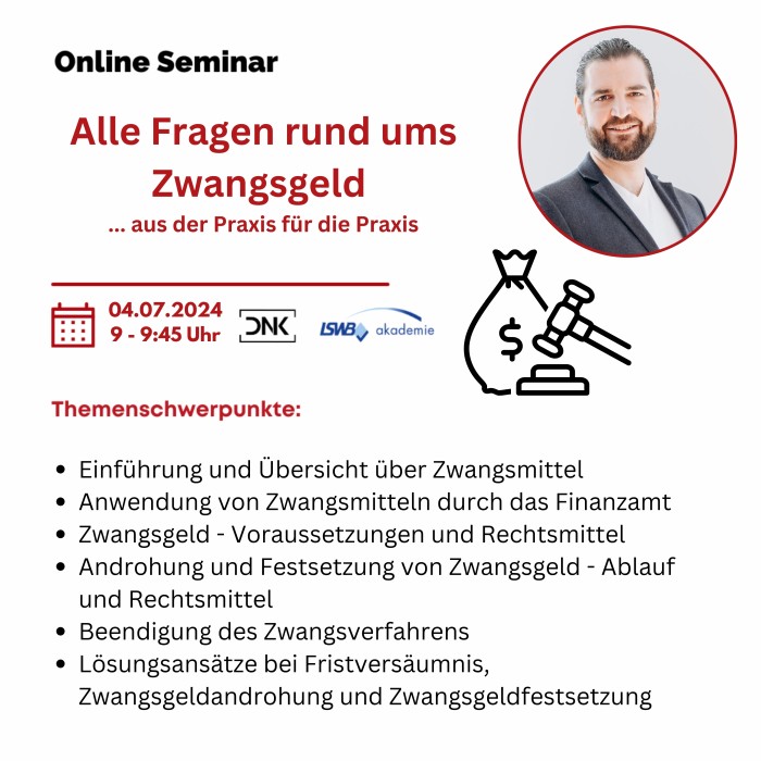 Online-Seminar der LSWB-Akademie: Alle Fragen rund ums Zwangsgeld